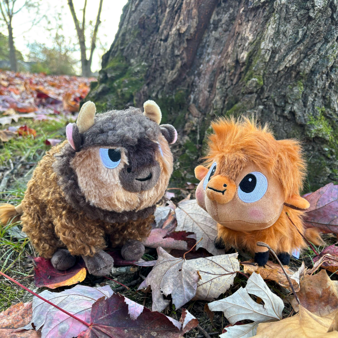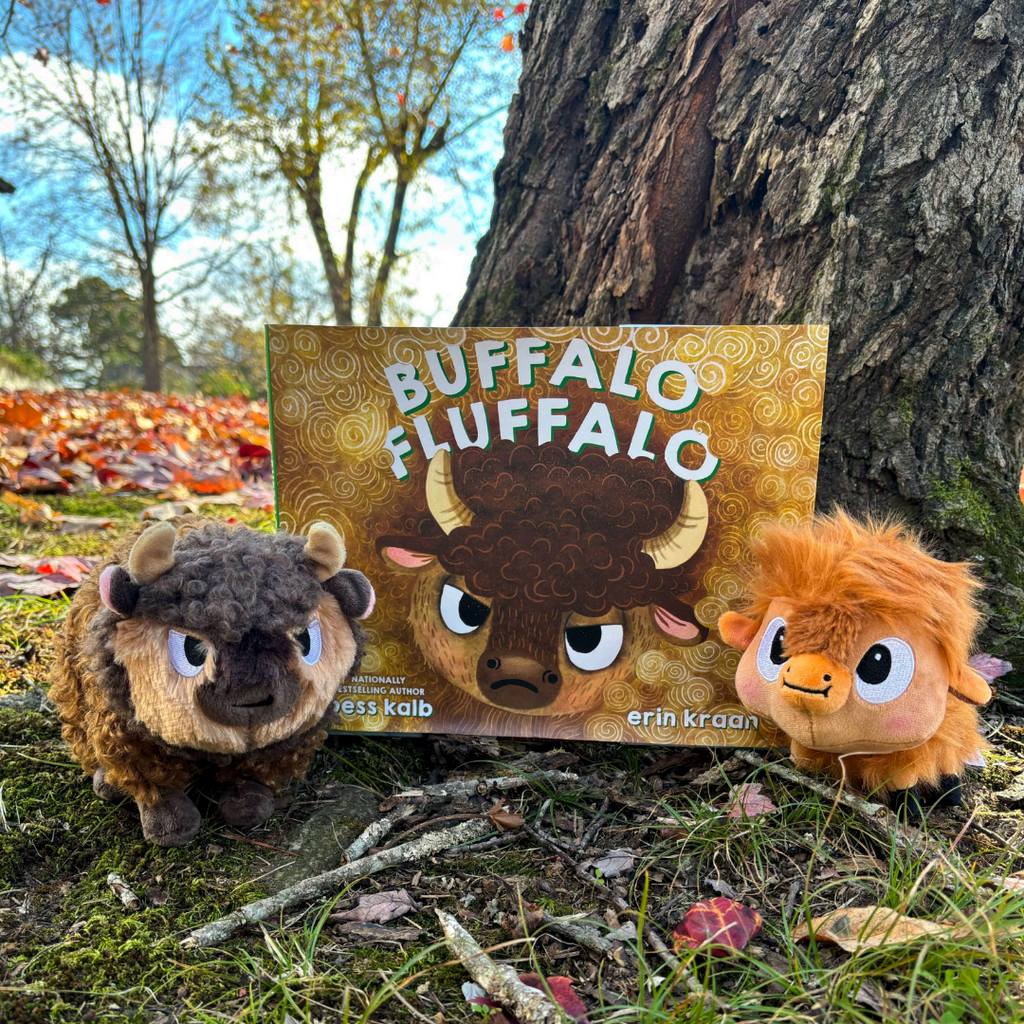 Meet Buffalo Fluffalo, a cute and cuddly plush buffalo that's as wild and wooly as he is charming. With his strong embroidered expression, soft horns, and long wispy tail, Buffalo Fluffalo is the perfect companion. Inspired by the book from nationally bestselling author Bess Kalb, and illustrator Erin Kraan, Fluffalo is truly one-of-a-kind.